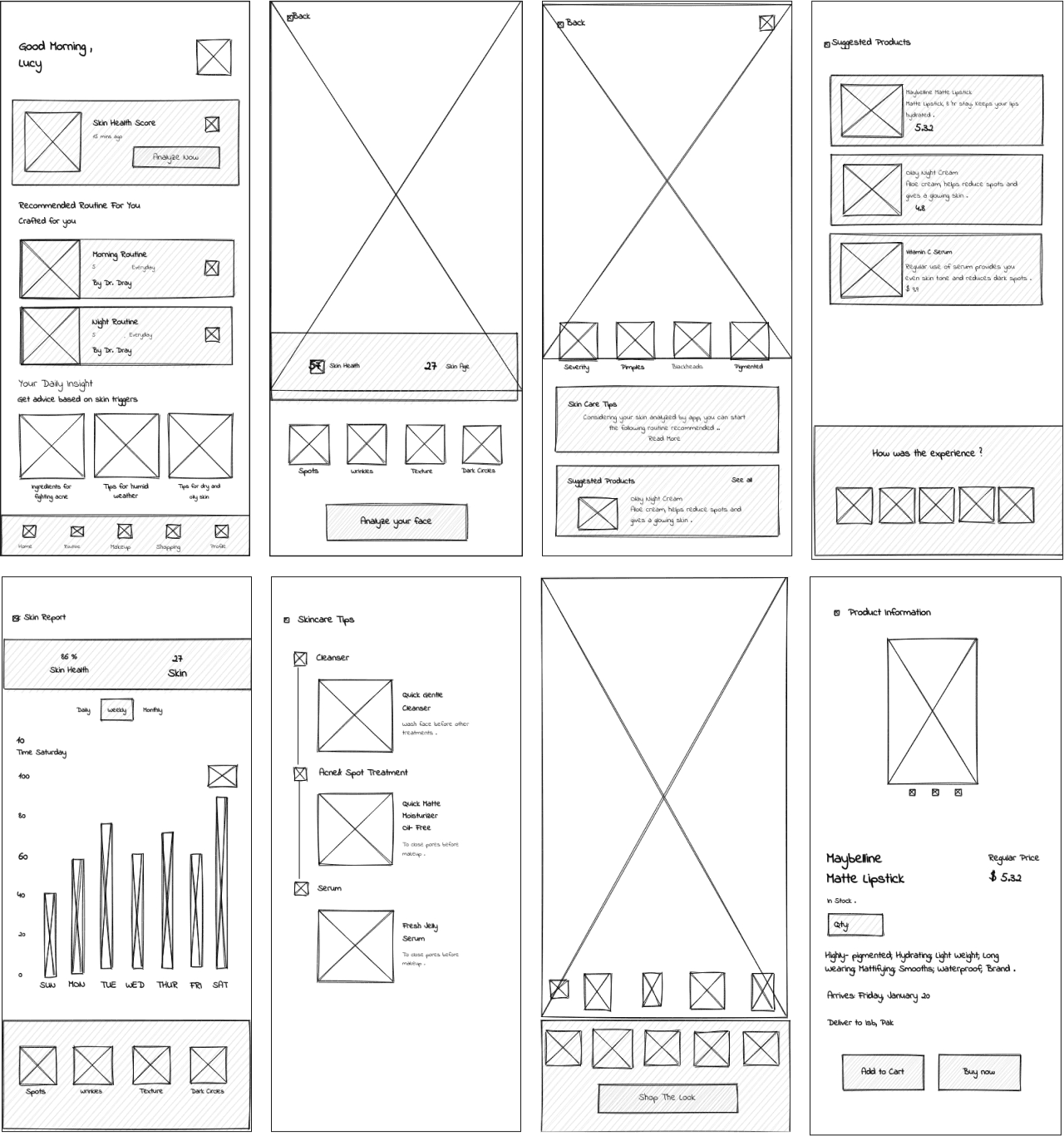 Wireframing translated the conceptual ideas into tangible structures, laying the foundation for the user interface. These skeletal representations helped define the layout and functionality, guiding the design process toward a clear and intuitive user experience.